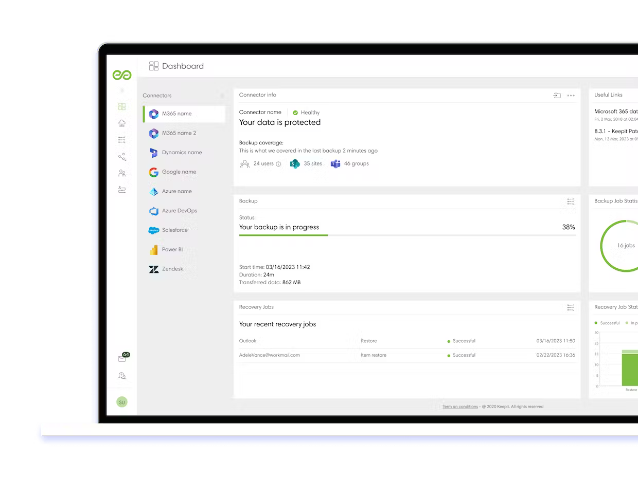 O Keepit é uma solução avançada de proteção e backup projetada para fortalecer a segurança dos seus dados.